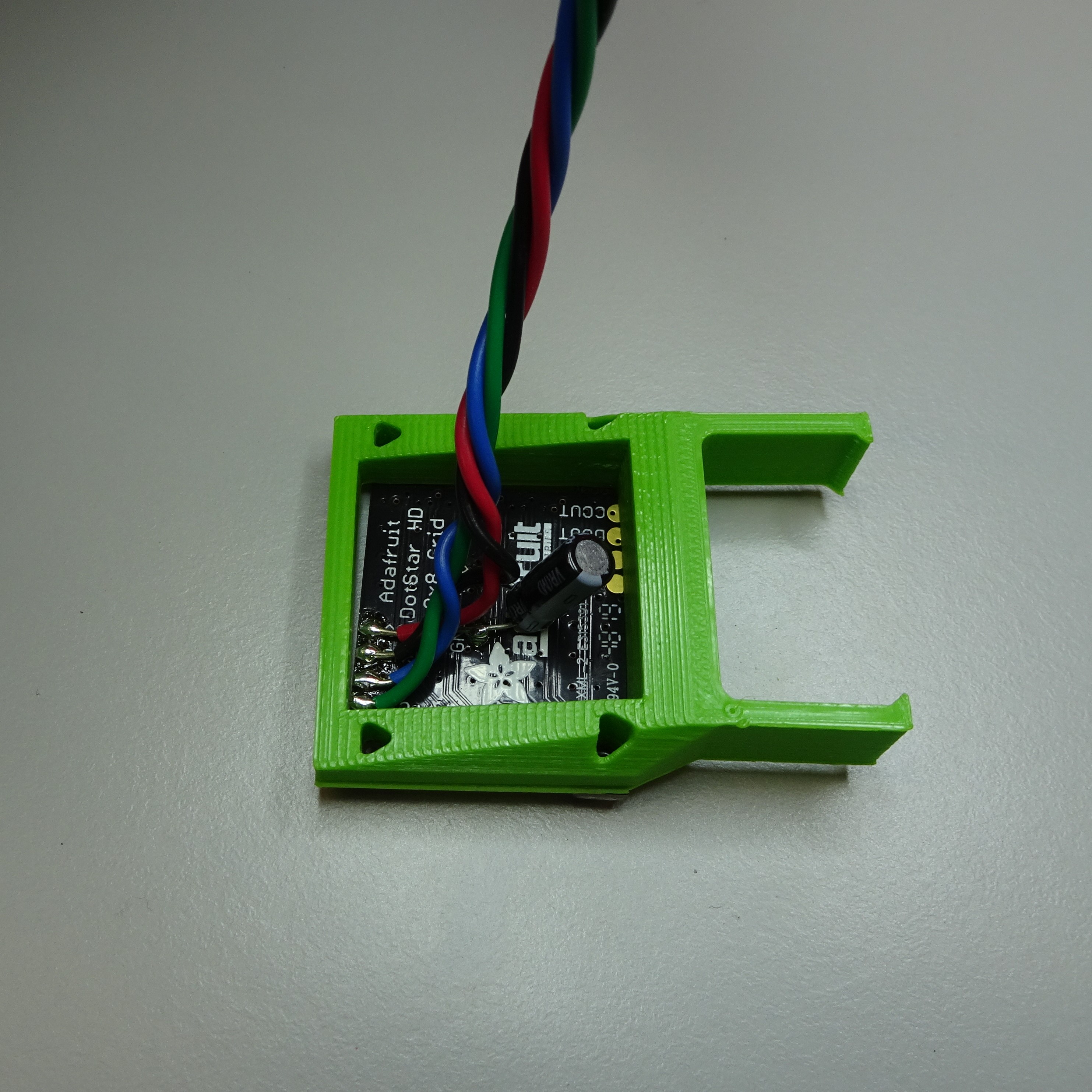 Pass the Adafruit 3444 LED grid through the LED array holder. Secure it in place with four M2.5x8mm screws using a 2mm hex screwdriver.