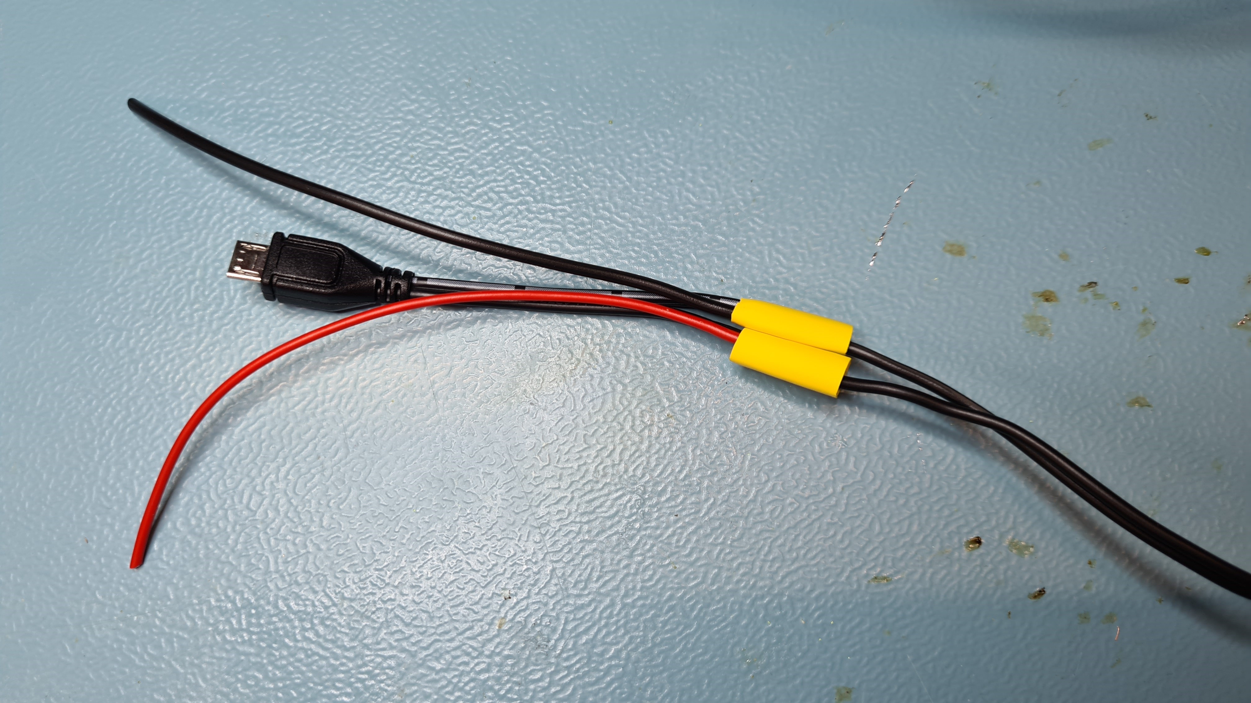 Wrap the negative wire from the longer cable with the already soldered negative wire from the USB end. Solder in place with a soldering iron and solder.