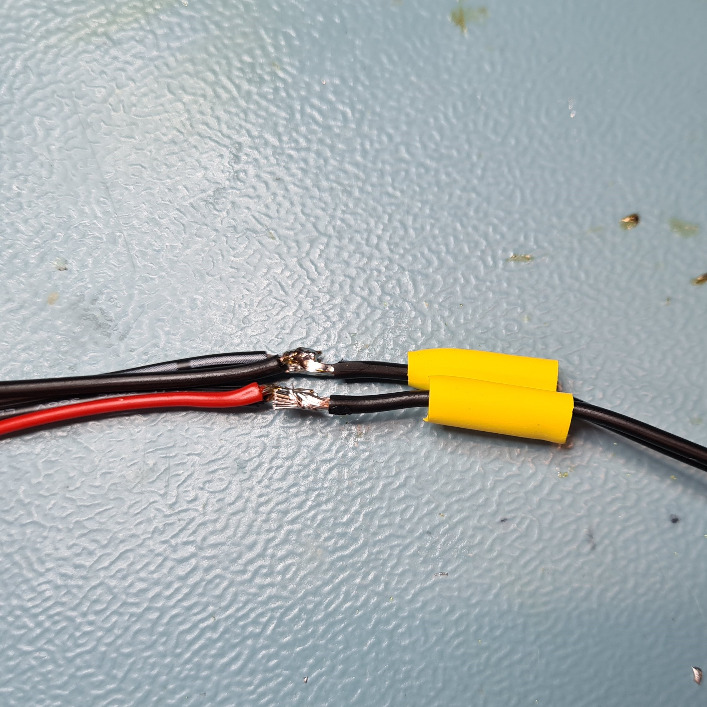 Move the two 4.8mm heat shrink tubes over the joints and heat in place using a heat gun or soldering iron.