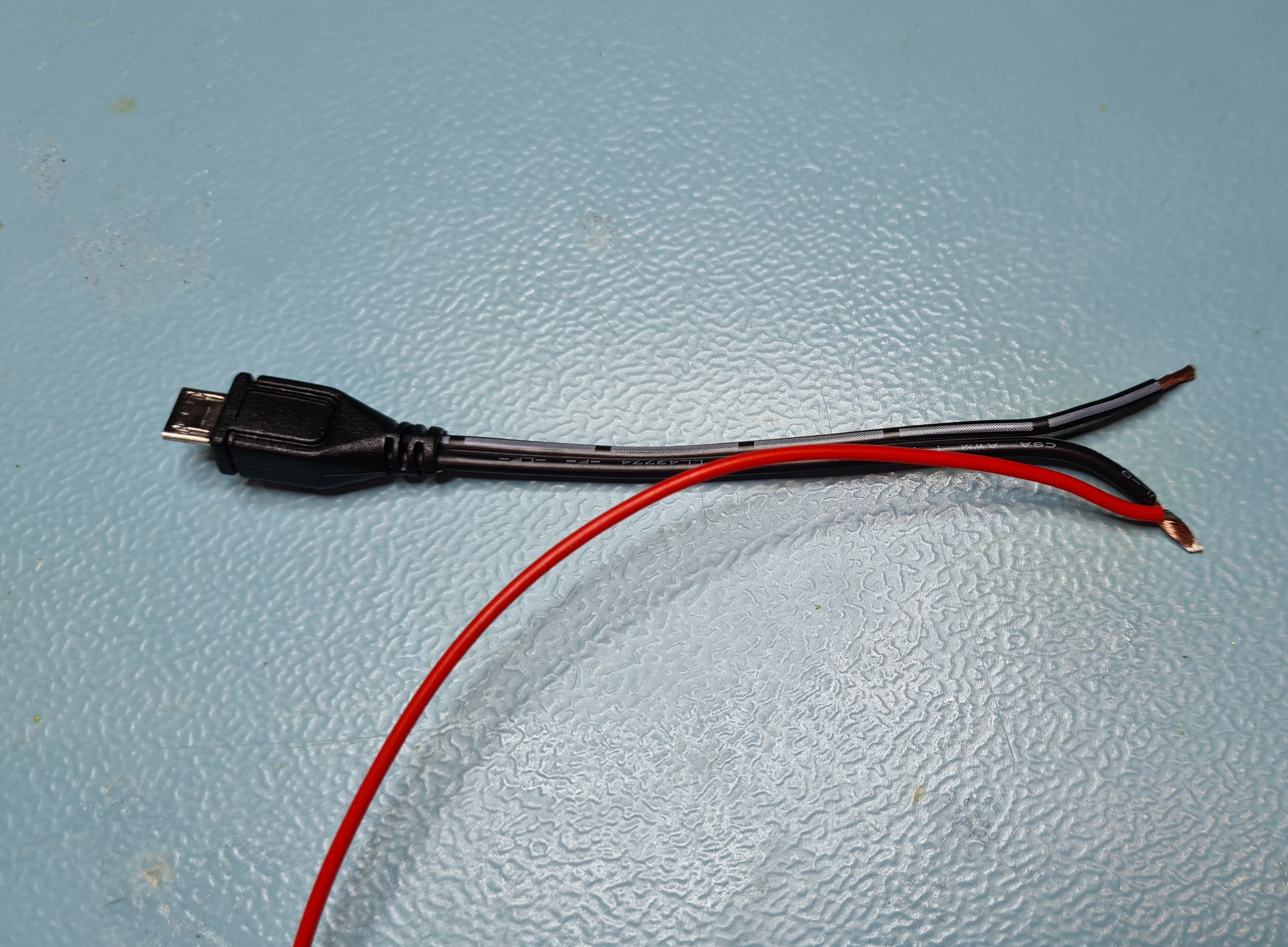Cut the Raspberry Pi power supply cable approximately 20cm from the USB plug end using wire cutters.