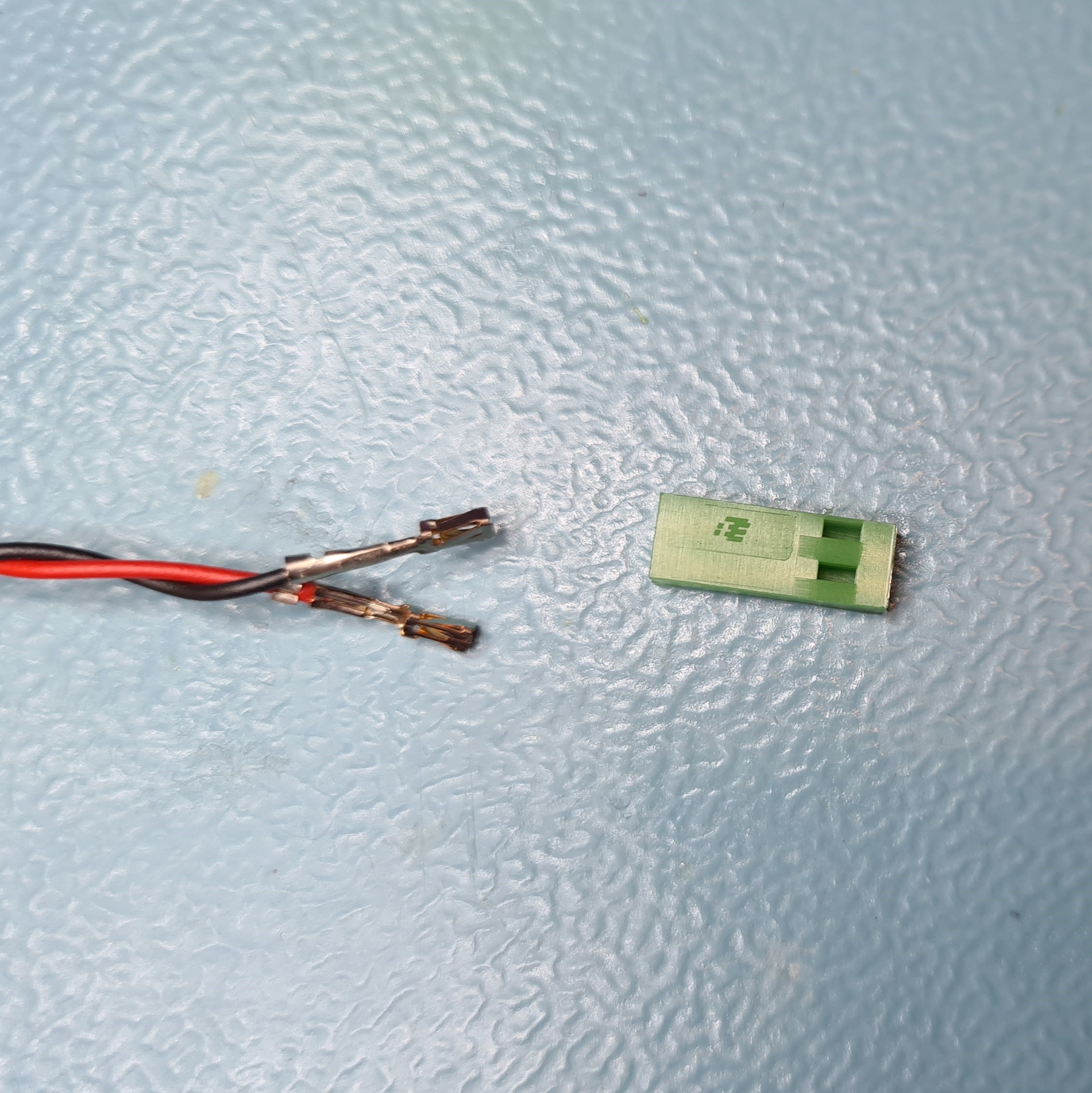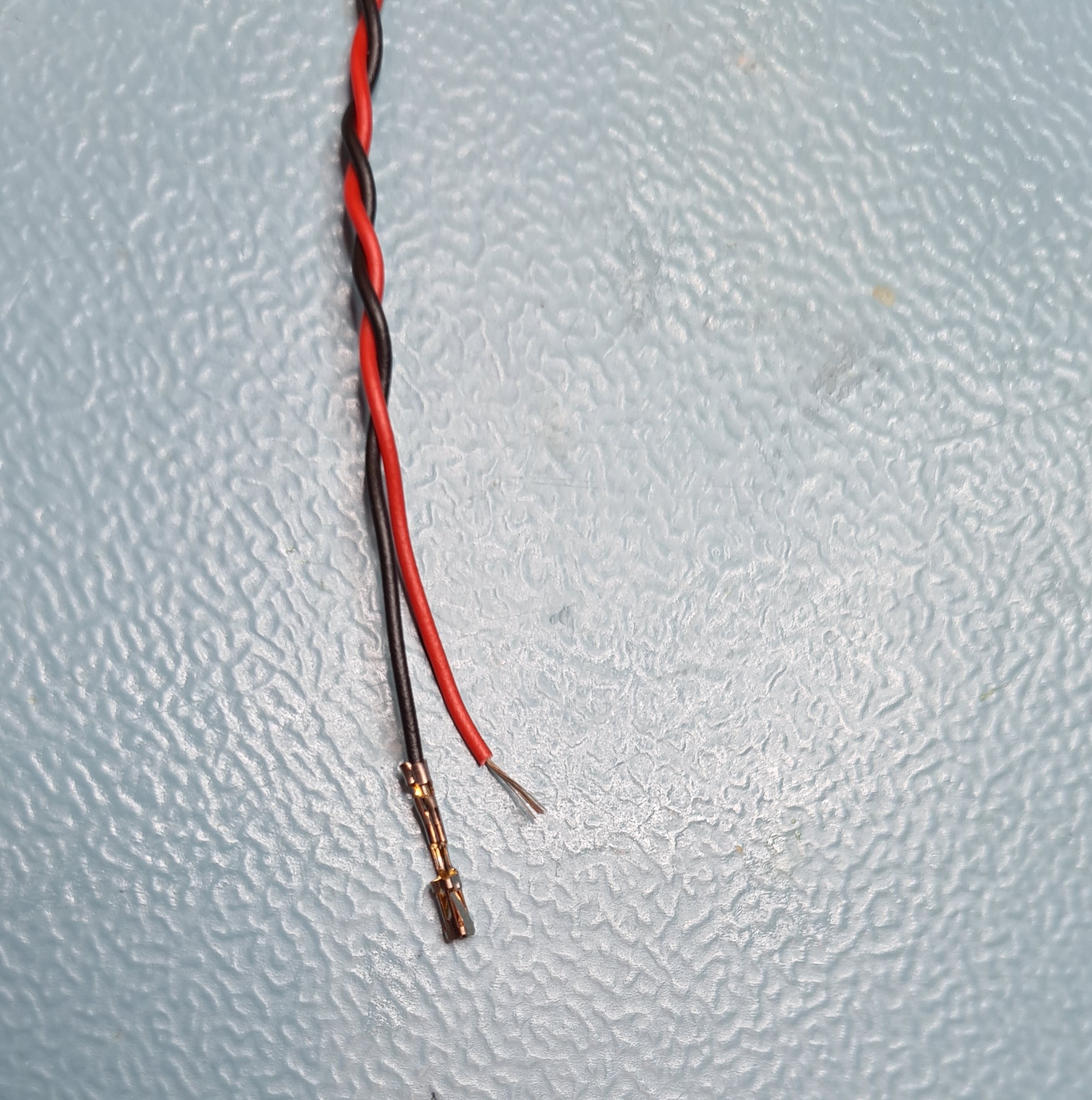 Using a crimp, crimp a female crimp terminal contact on to the ends of both the wires.