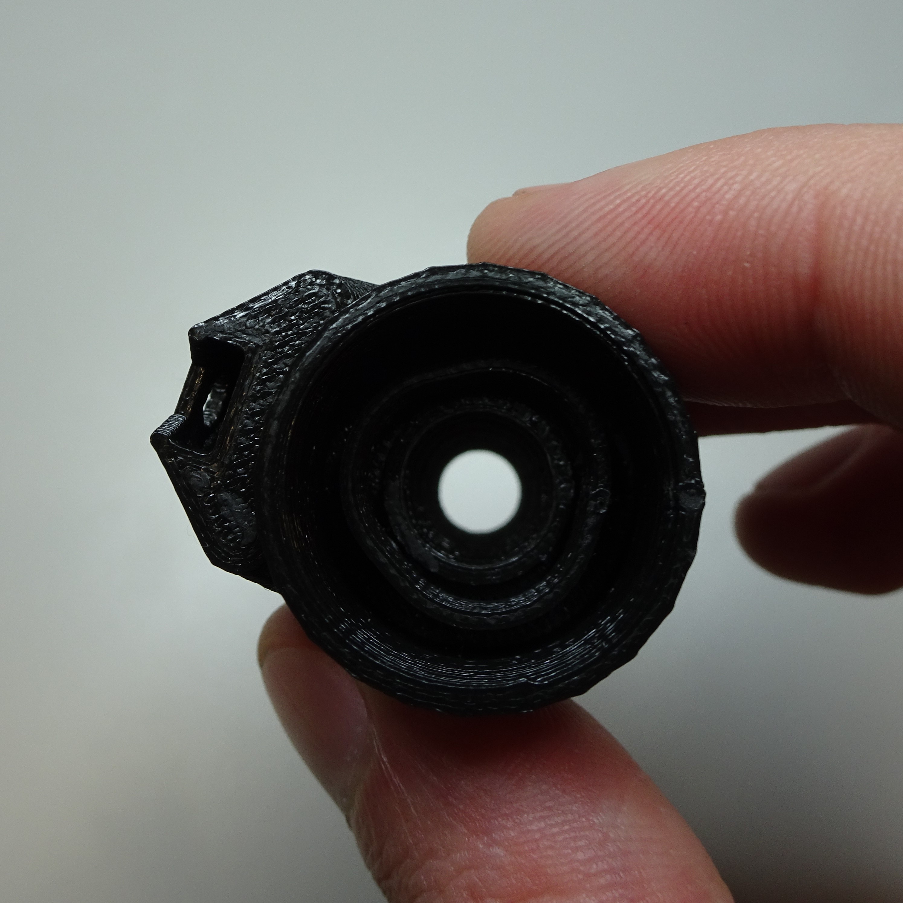 After printing the transmission optics module casing there may be strings or dust. Clean these out so they won't block the light or fall onto the camera sensor.