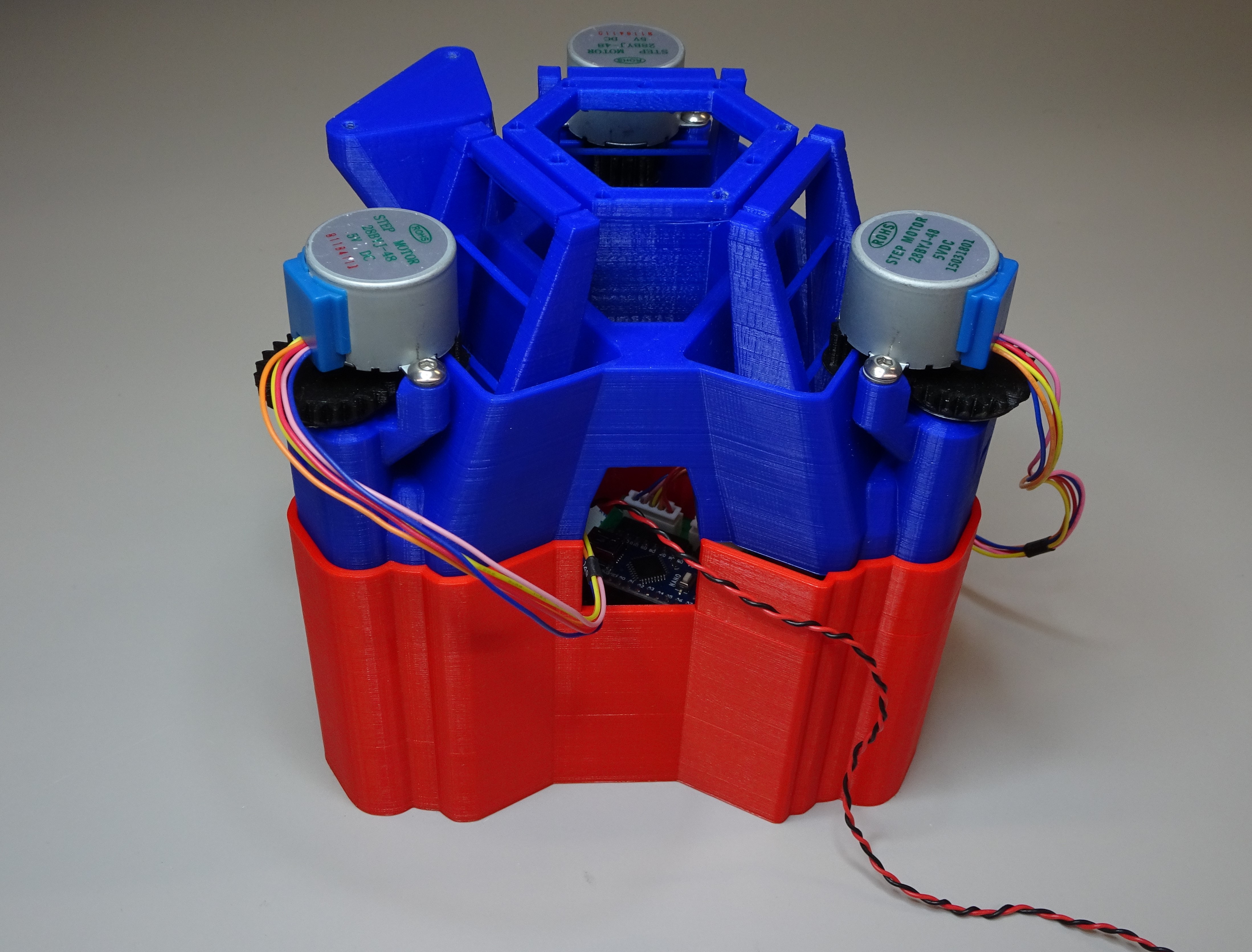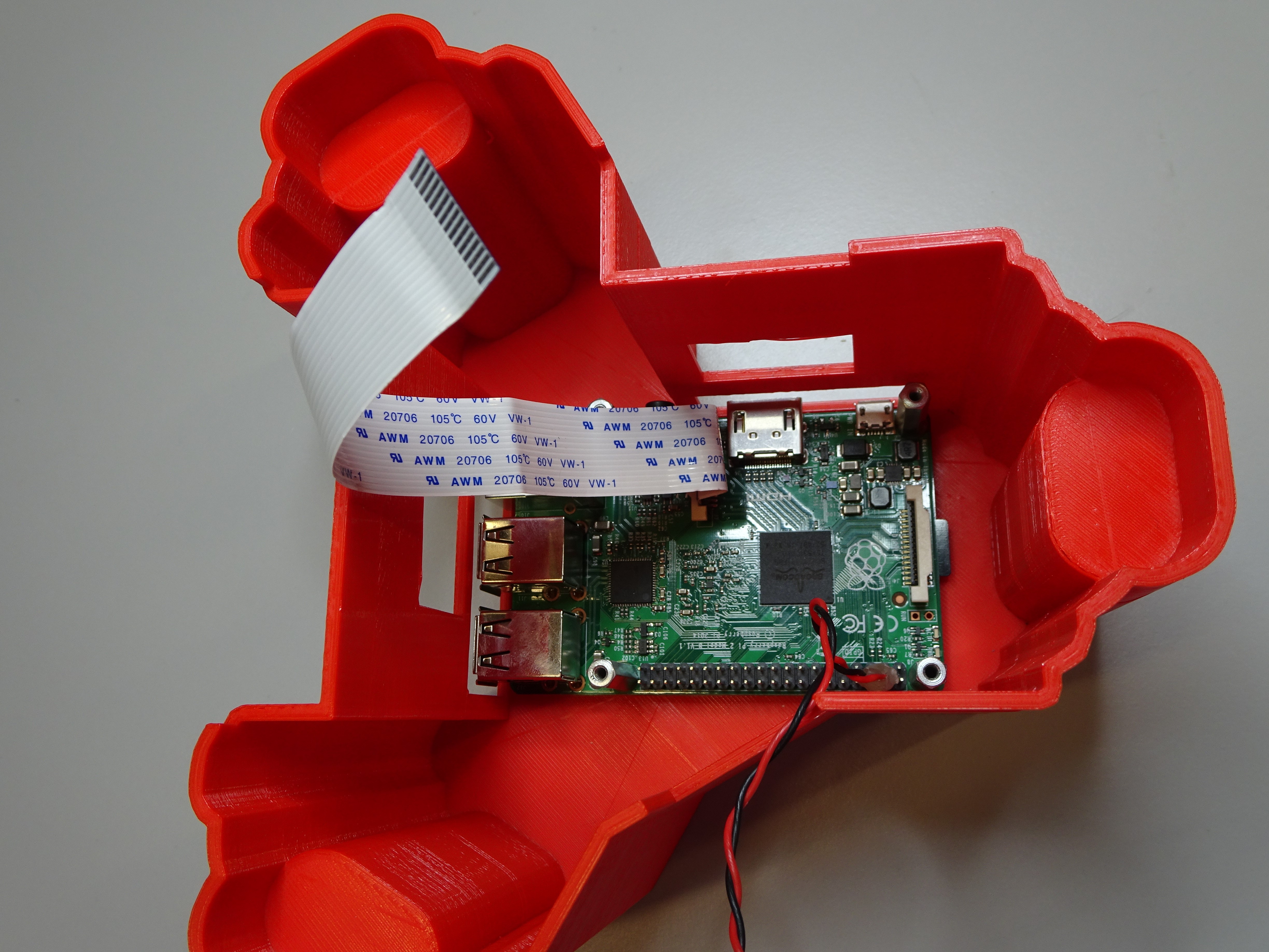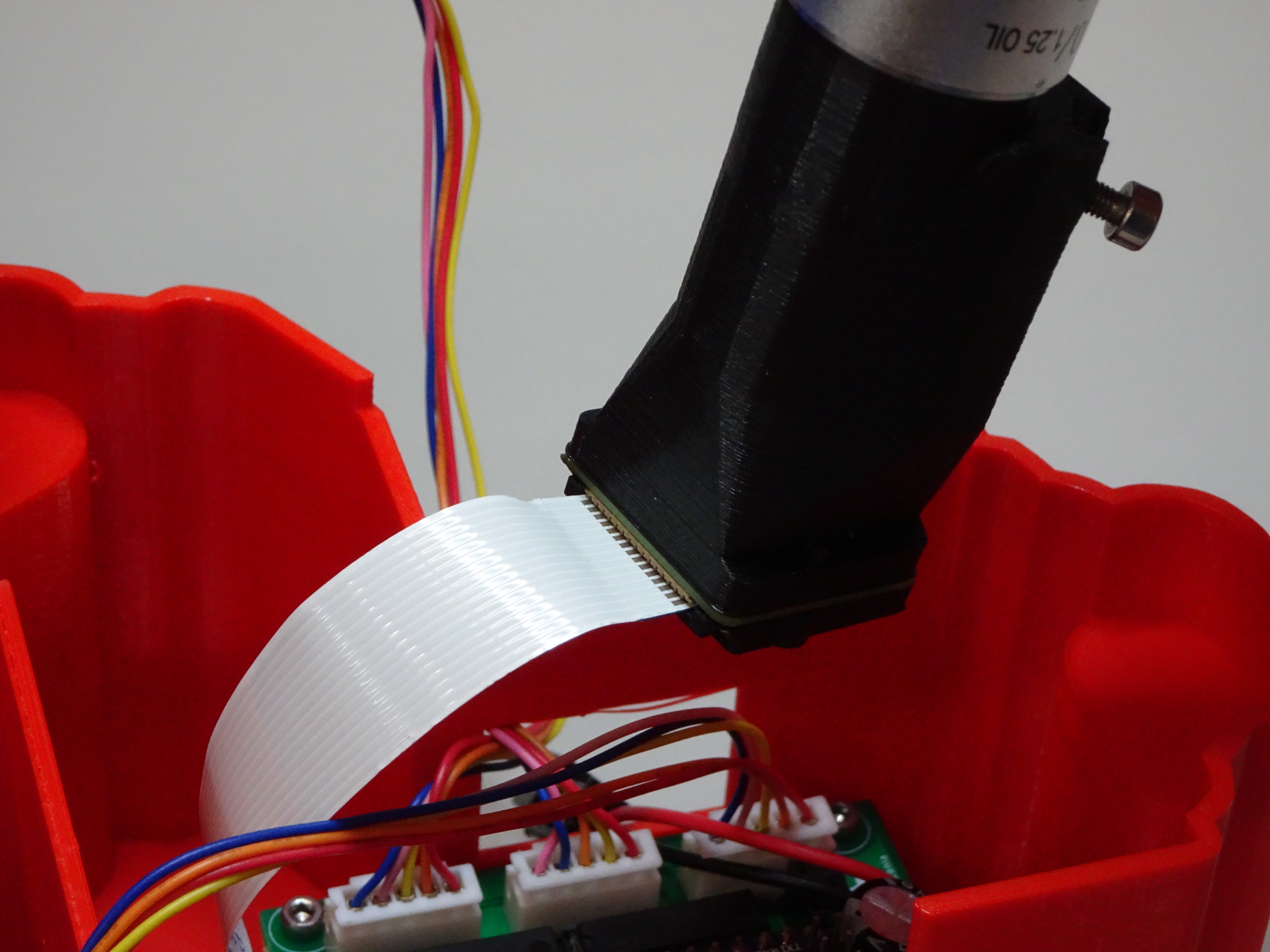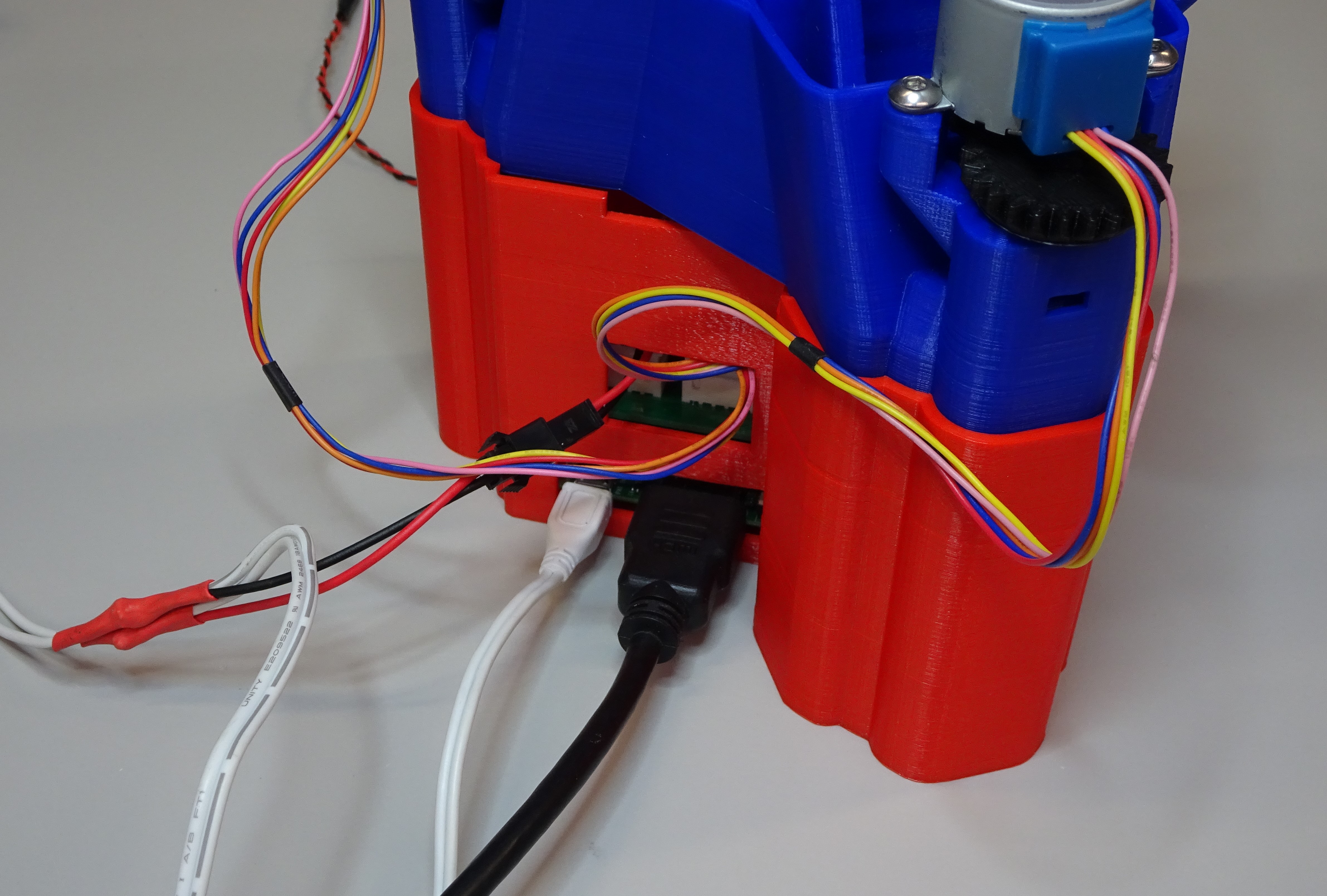 There are windows around base to connect external components. On the side there is space for USB power to the Raspberry Pi and Sangaboard and HDMI.