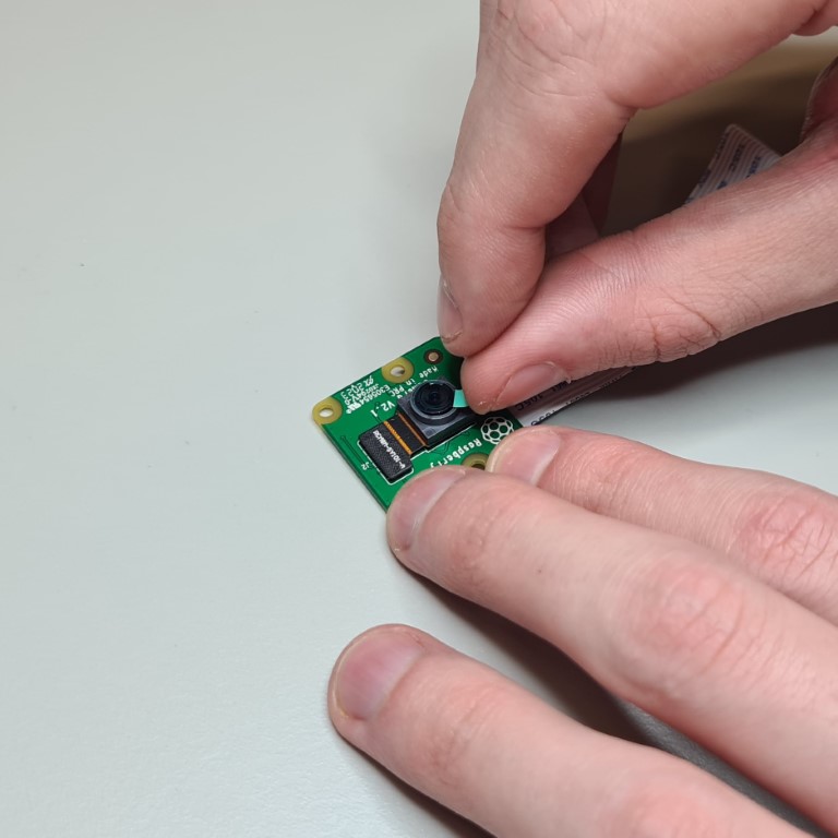 Remove the plastic film from the lens of the Raspberry Pi camera v2.