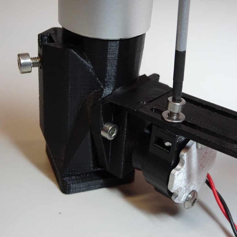 When the optics module is in roughly the correct position, the objective screw can be tightened through the access hole in the back.