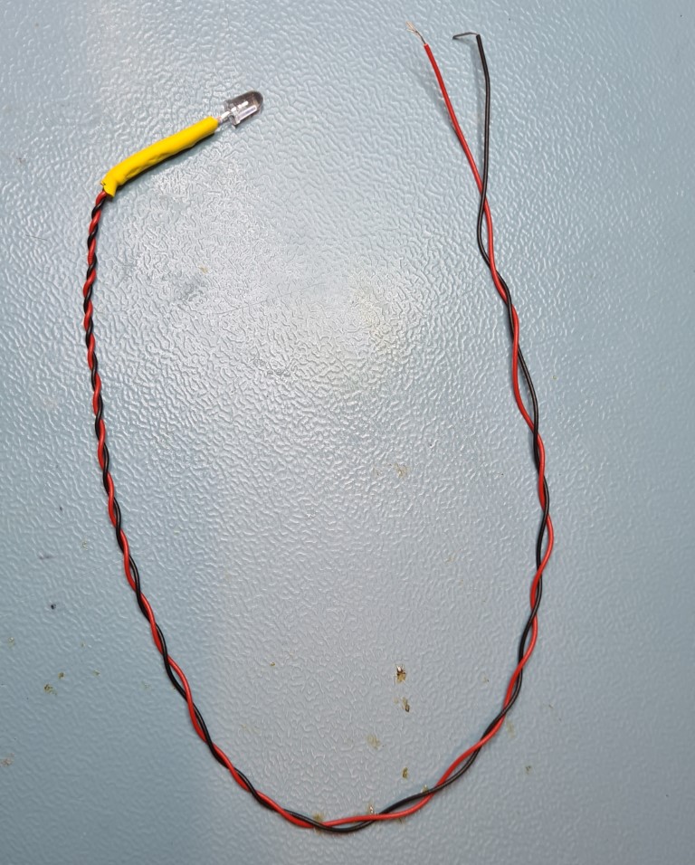 Solder the black 0.5A instrument wire on to the free leg of the LED using a soldering iron and solder.
