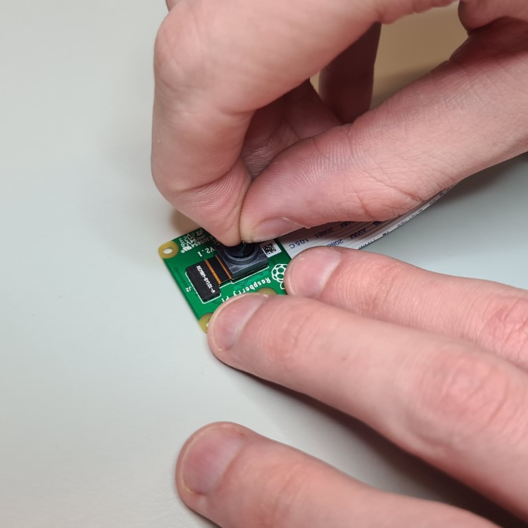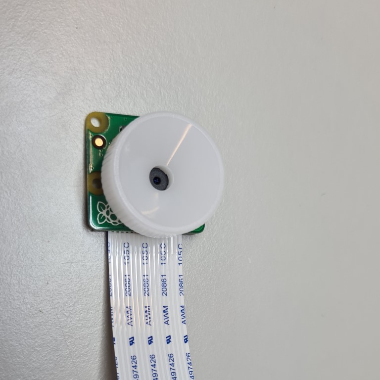 Remove the plastic film from the lens of the Raspberry Pi camera v2.
