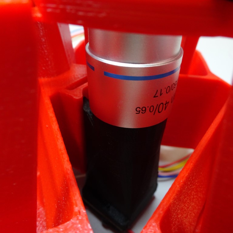 After printing the transmission optics module casing there may be strings or dust. Clean these out so they won't block the light or fall onto the camera sensor.