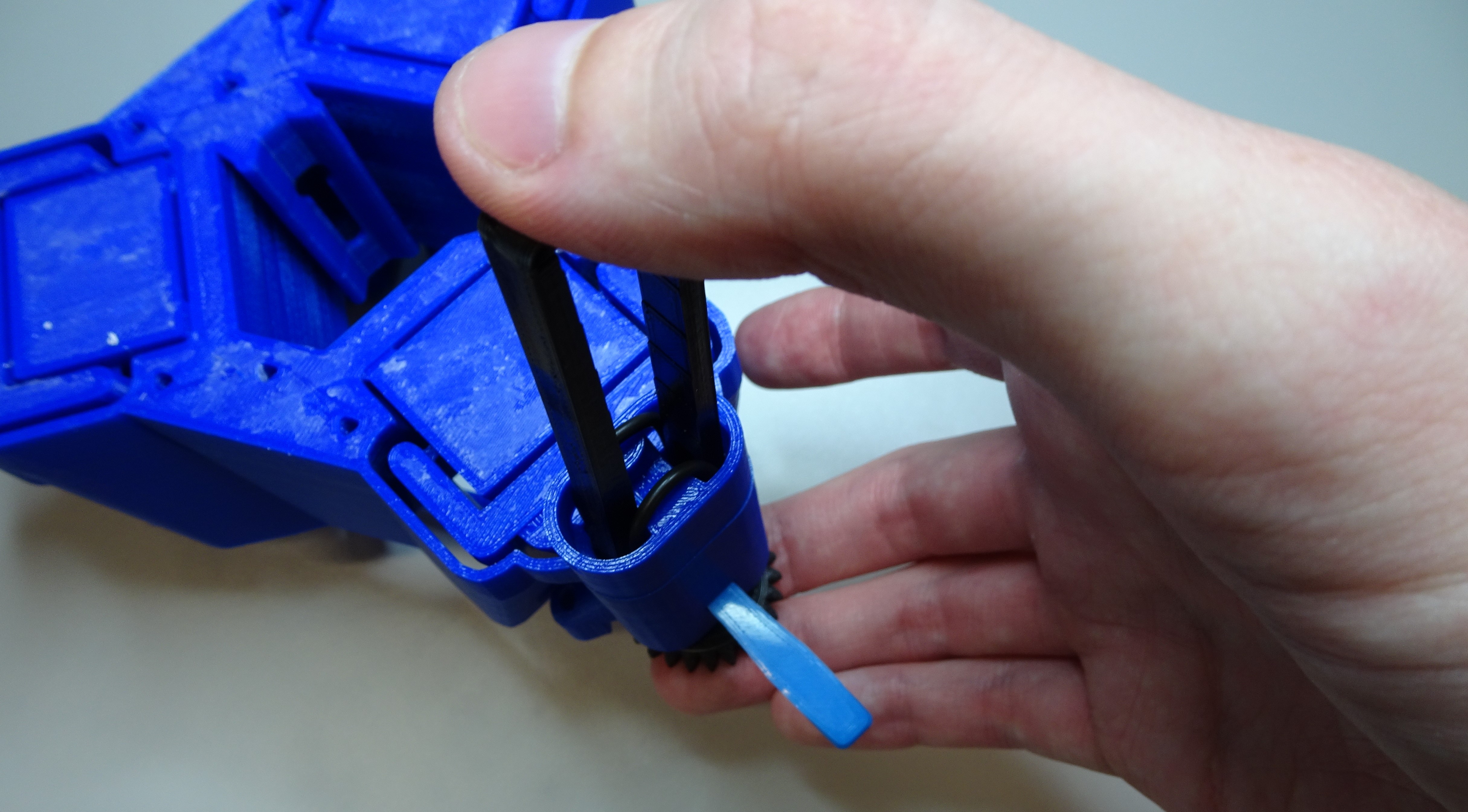 For printing stability, on the main body there are two plastic ties in every actuator. Cut these out, either using a craft knife or wire cutters.