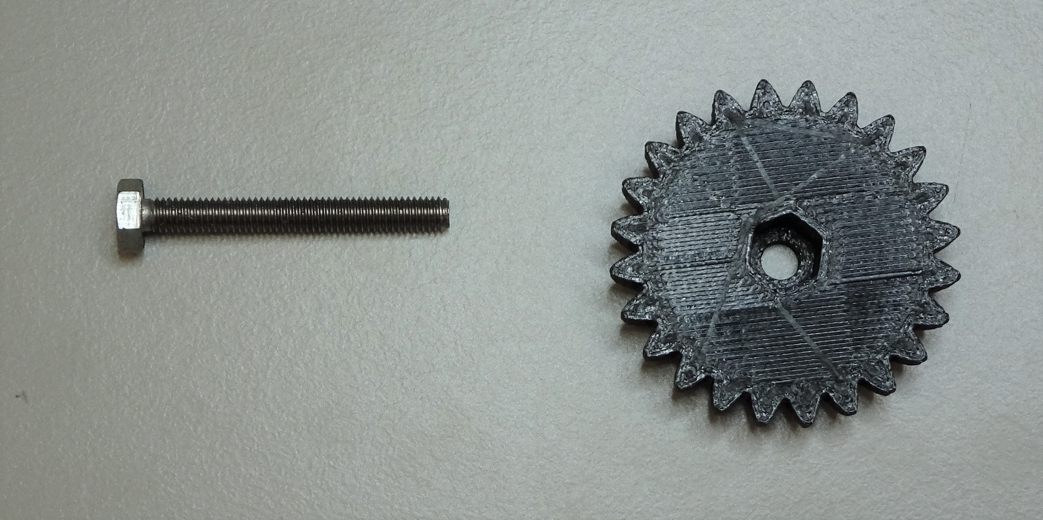 Screw the gear through the hole in the top of the actuator, through the nut that you just inserted. Apply a small amount of light oil to the screw thread before it is fully tightened.