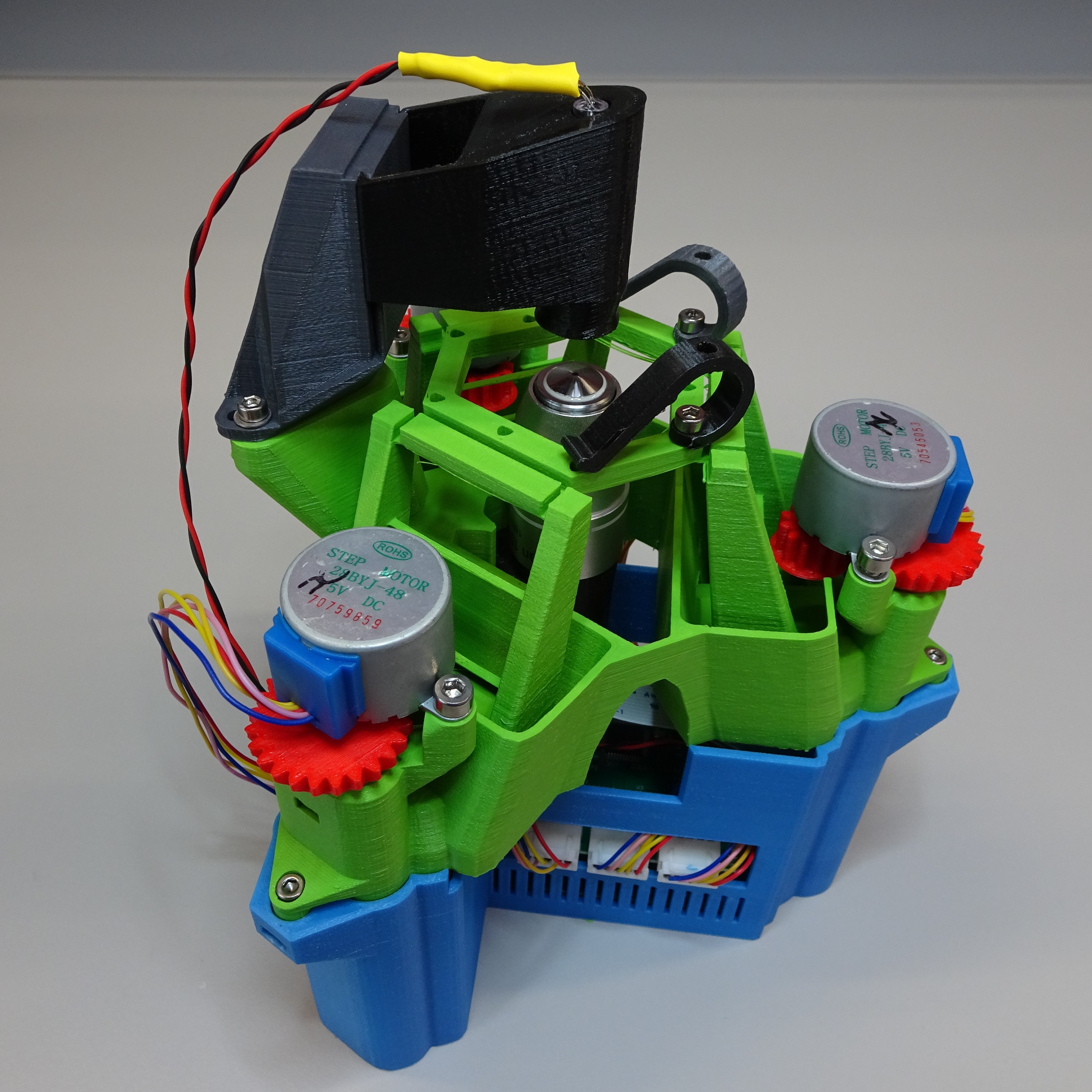 There are windows around base to connect external components. On the side there is space for USB power to the Raspberry Pi and Sangaboard v0.2 and HDMI.