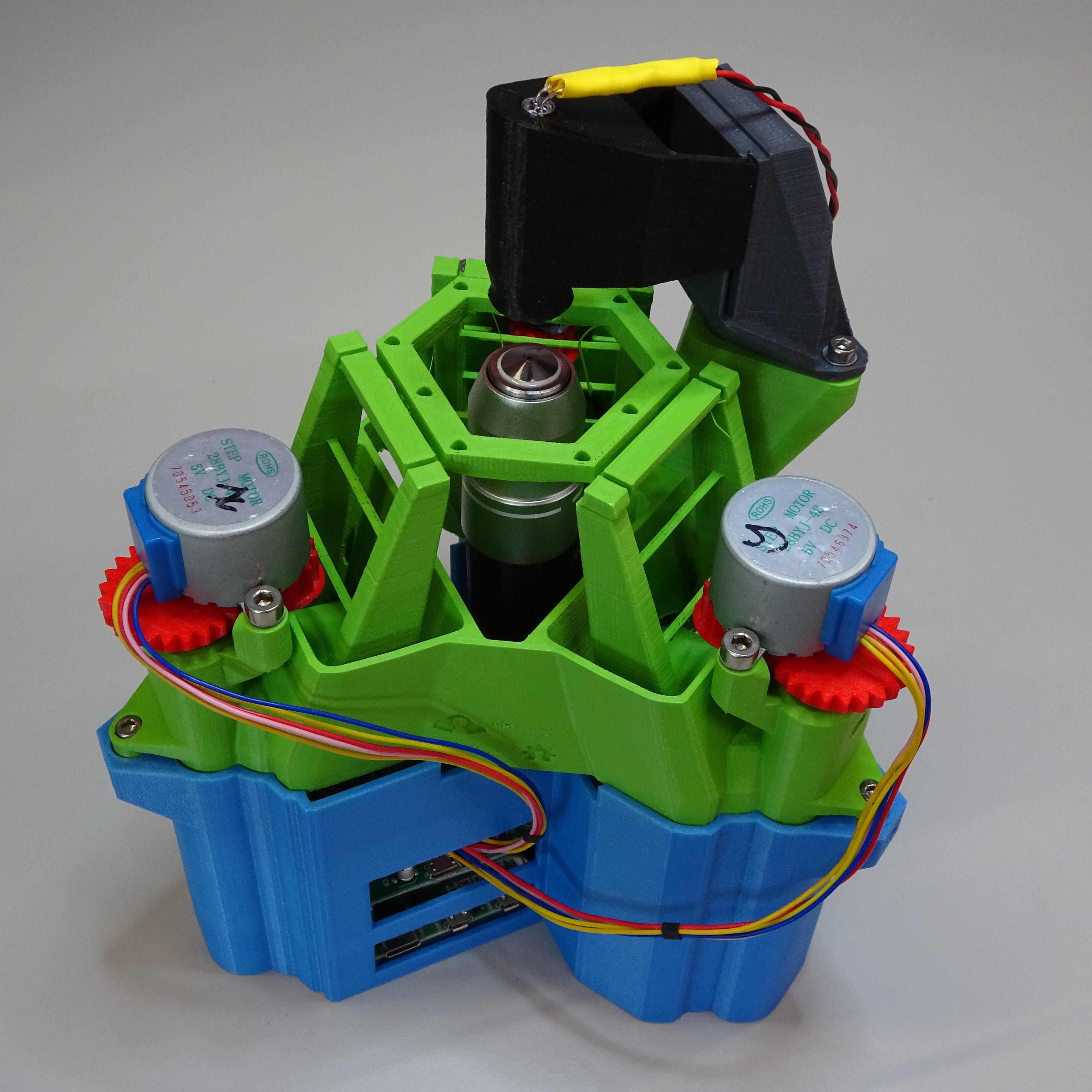 The delta stage is a 3D printed x-y-z translation stage. As the optics do not move it is particularly suited to more complex imaging (phase, reflection, fluorescence microscopy). There are two standard ways to build it, with either transmission illumination or reflection illumination. The motorised translation stage, which forms the main body of the microscope, is the same for both, and so swapping between the two configurations is possible by replacing the optics module. There are also some optional components linked at the bottom of the page.