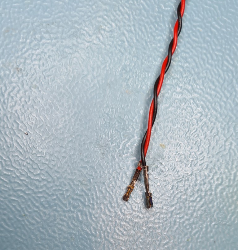 Using a crimp, crimp a female crimp terminal contact on to the ends of both the wires.