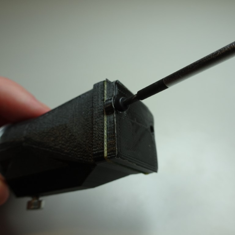 After printing the transmission optics module casing there may be strings or dust. Clean these out so they won't block the light or fall onto the camera sensor.