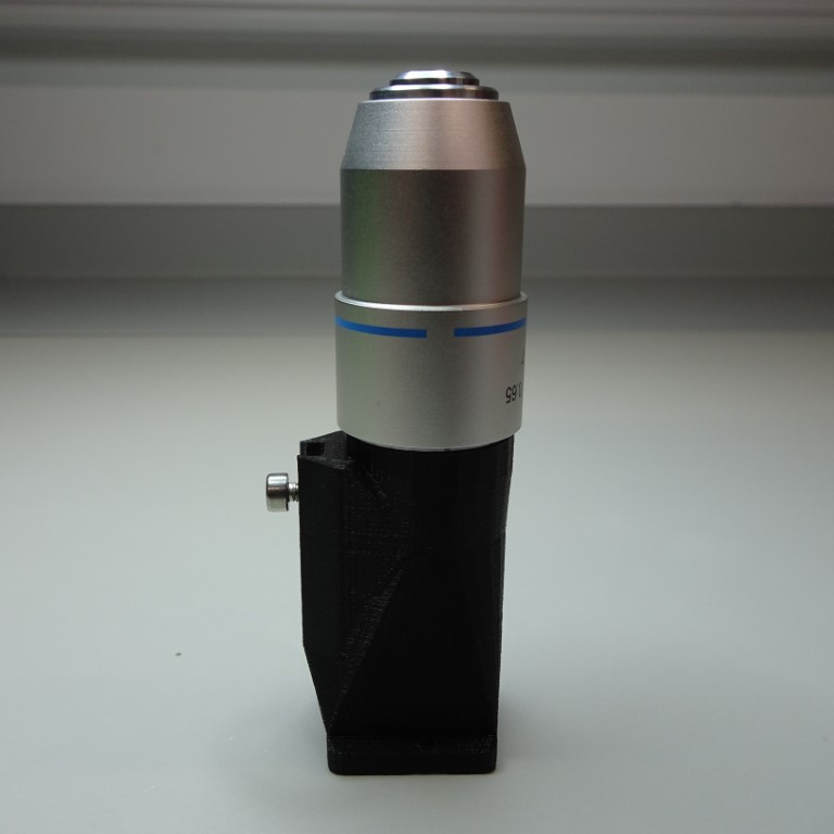 When the optics module is in roughly the correct position, the objective screw can be tightened through the access hole in the back.