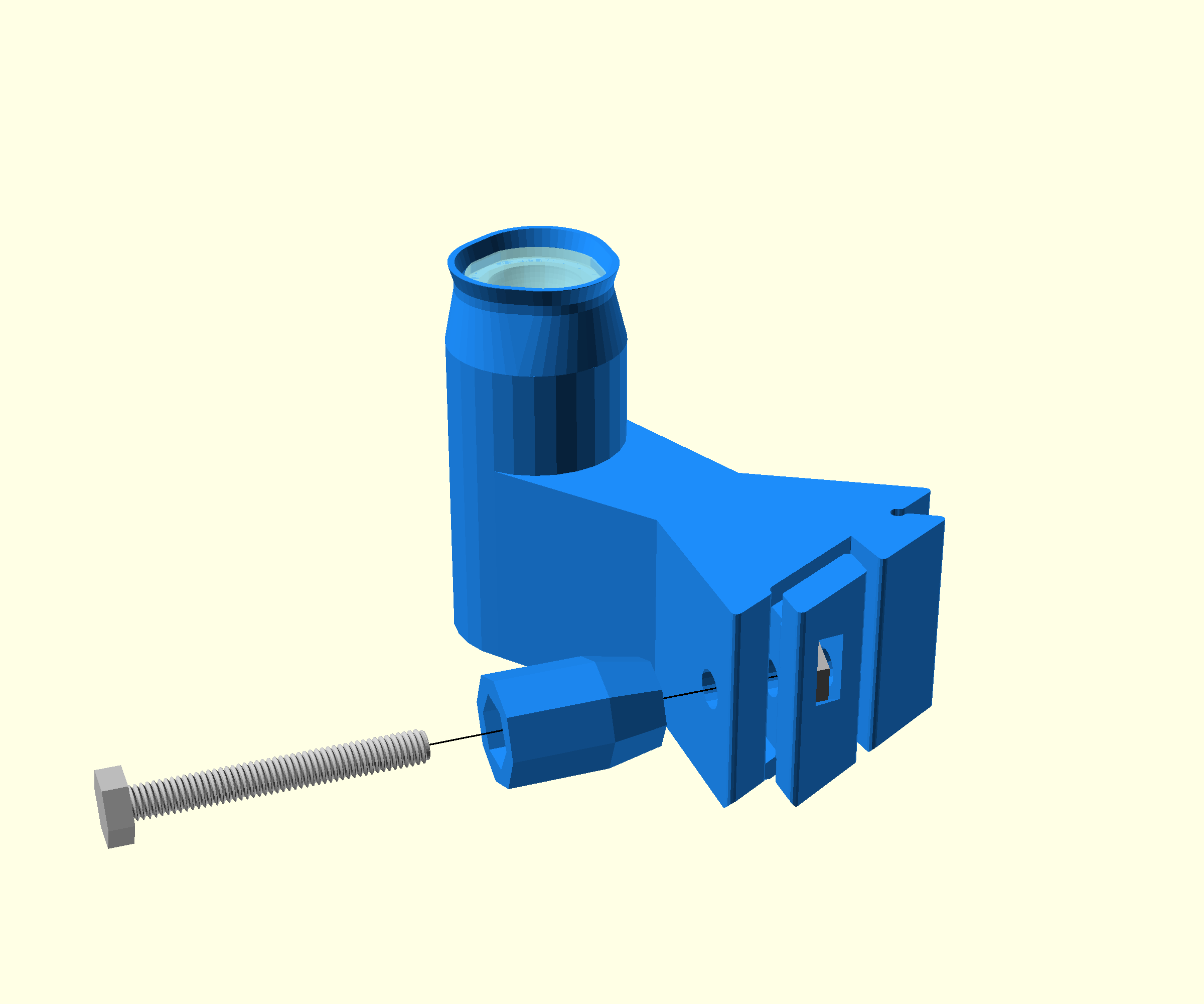 - Start to screw the thumbscrew into the nut from the outside of the dovetail