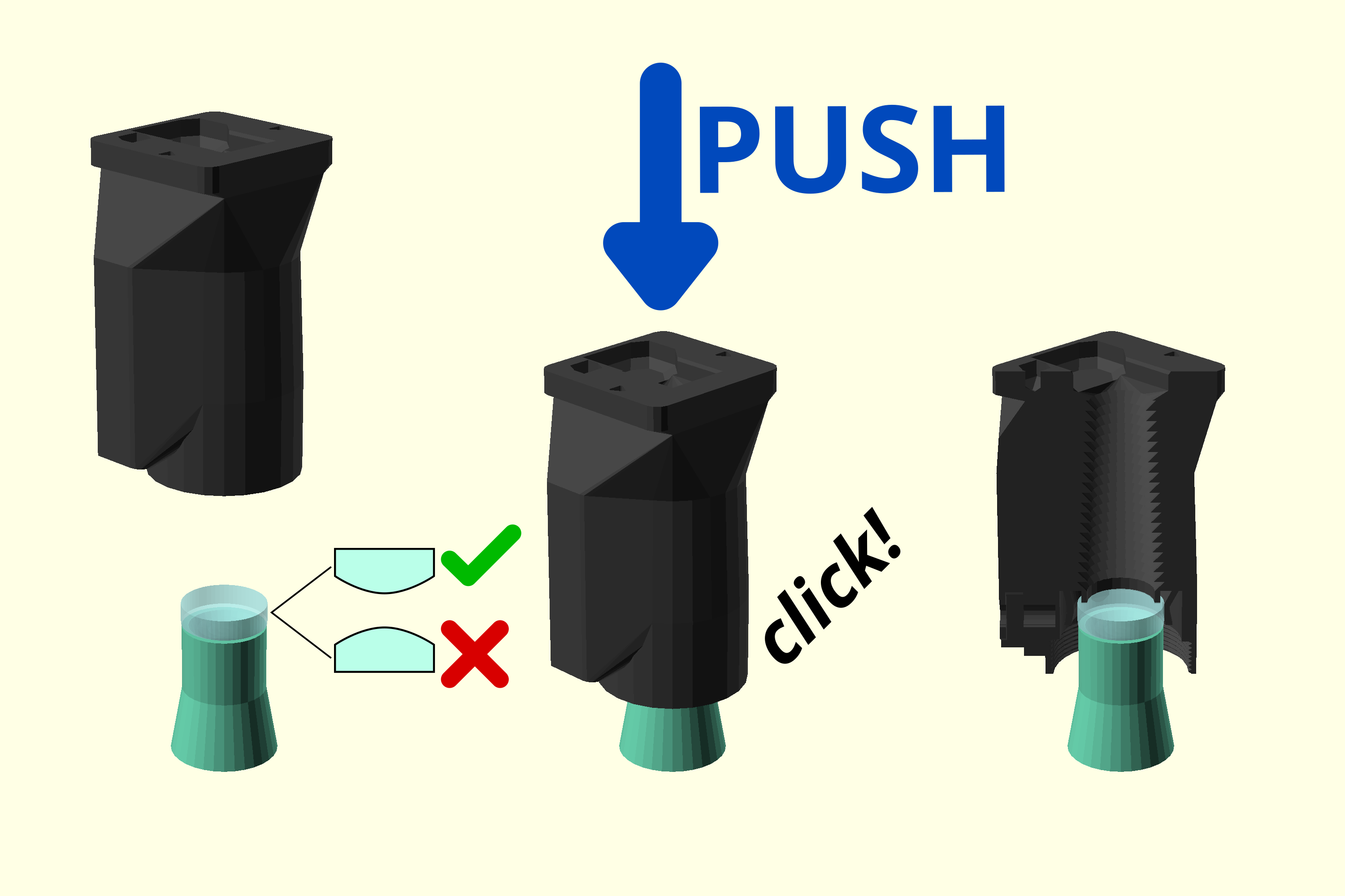 - Visually inspect the positioning of the lens. It should be flat, not seated at an angle. If necessary, push against the lens tool to align properly