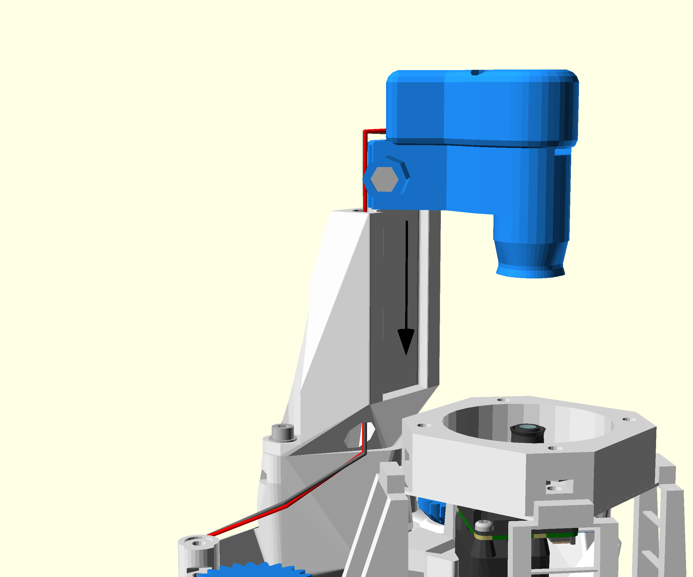 - Pass the illumination cable from the top to the bottom of the cable guide in the main body, between the Z gear and the Y gear.