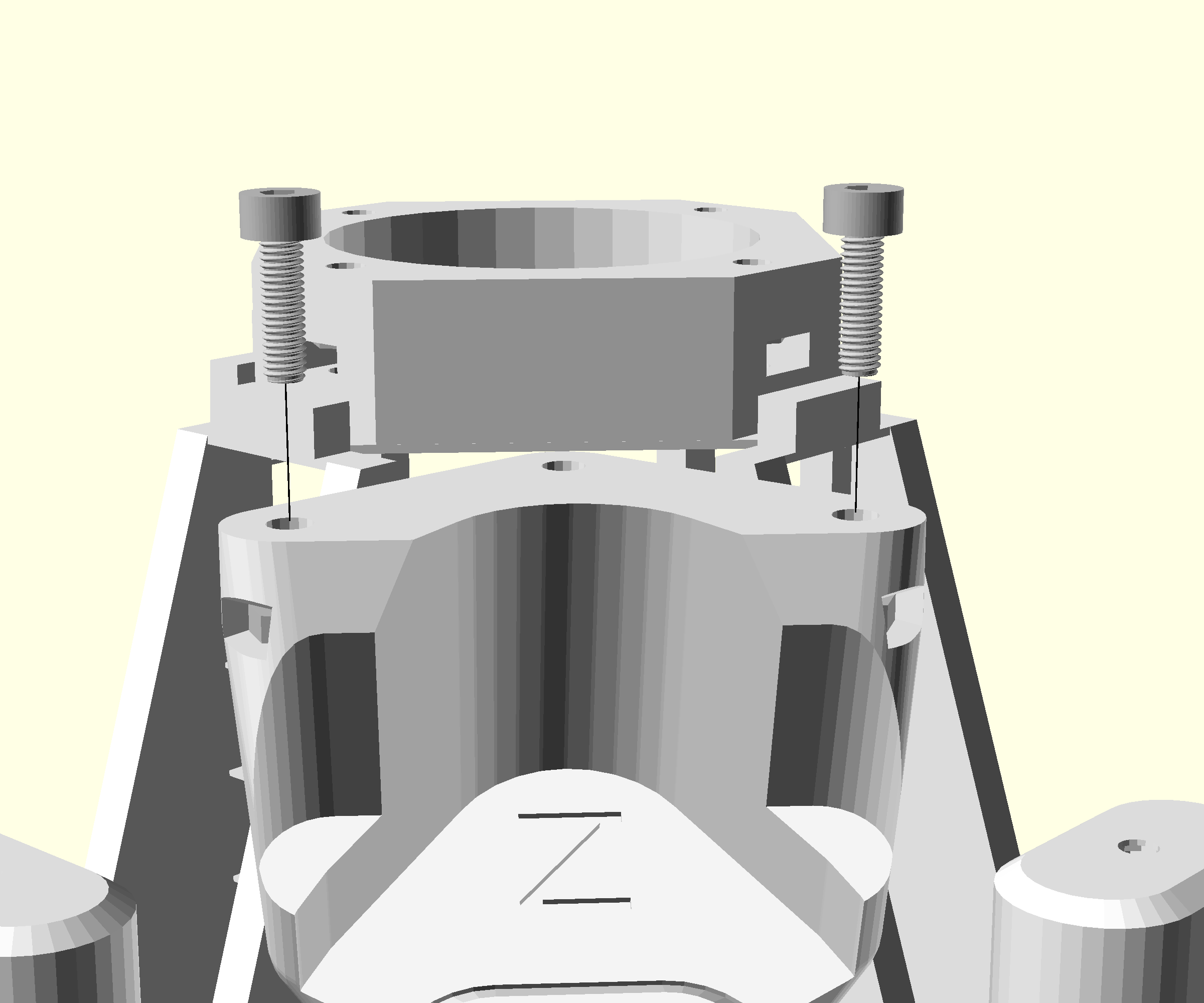 - Repeat the steps used above to add two M3 nuts into the platform above the z-axis. You do not need to insert a nut in the third hole on the illumination platform
