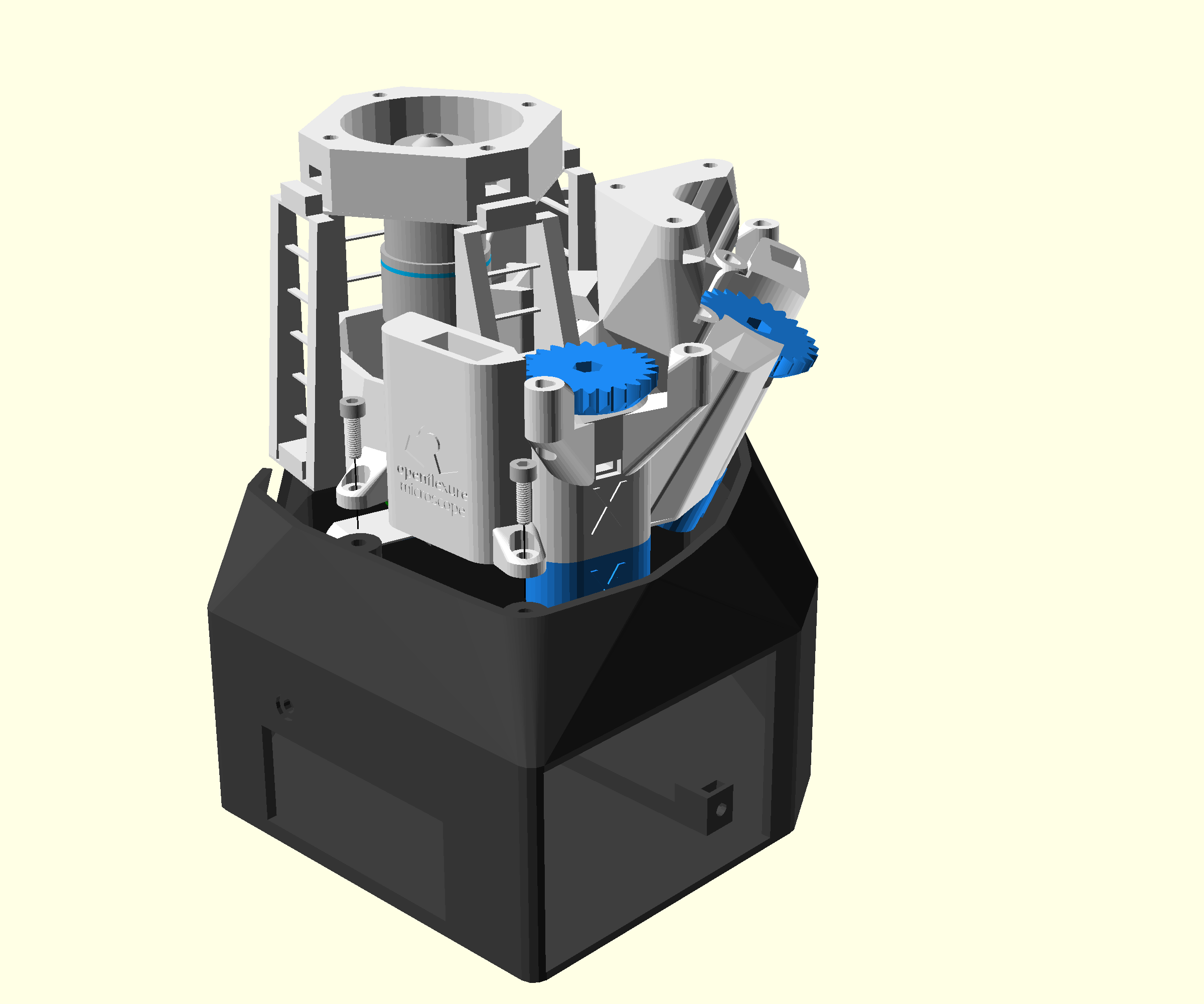 - Take the complete optics module and pass it through the bottom of the microscope.