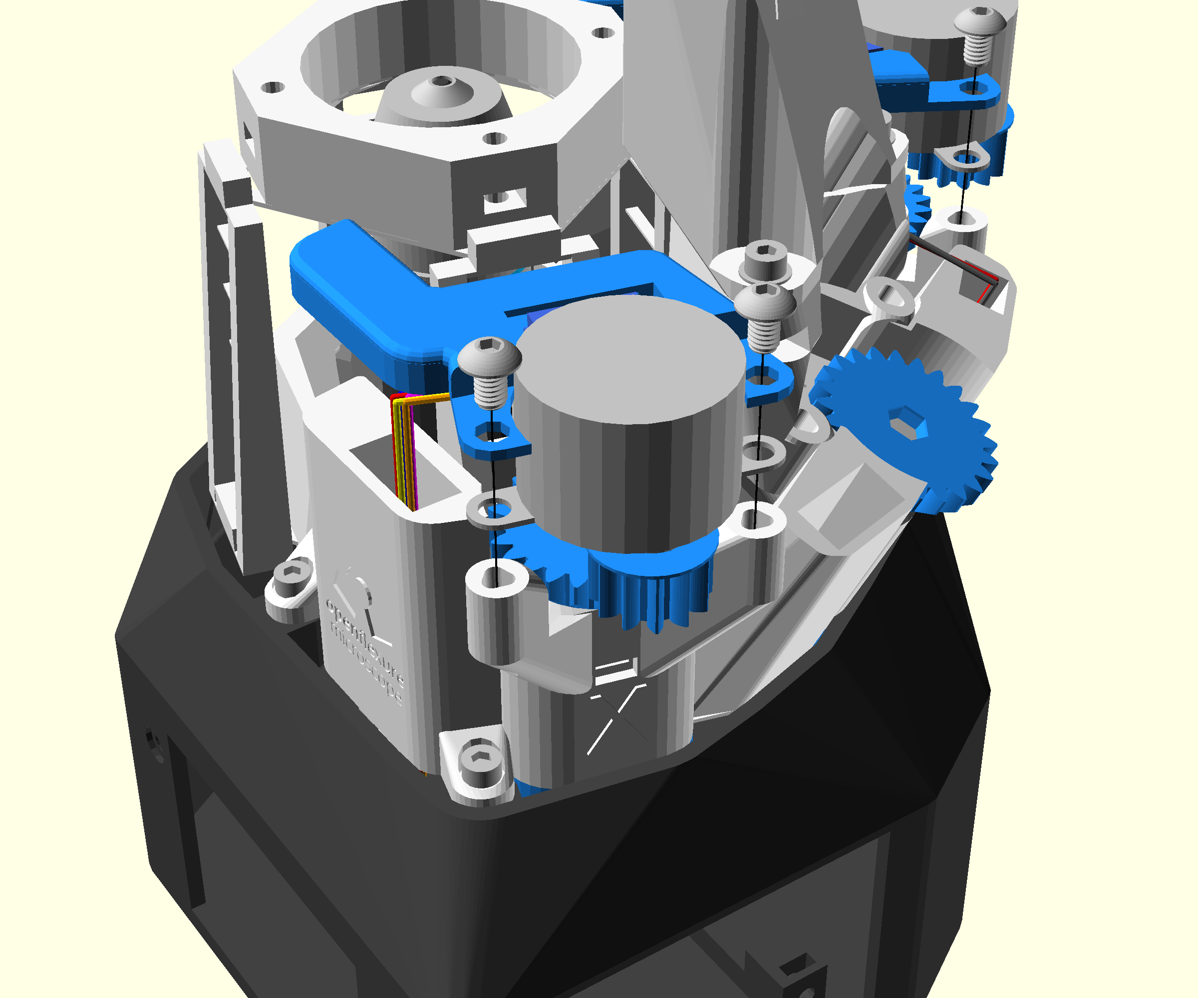 - Place the motor on the motor lugs with the small gear towards the outside of the microscope