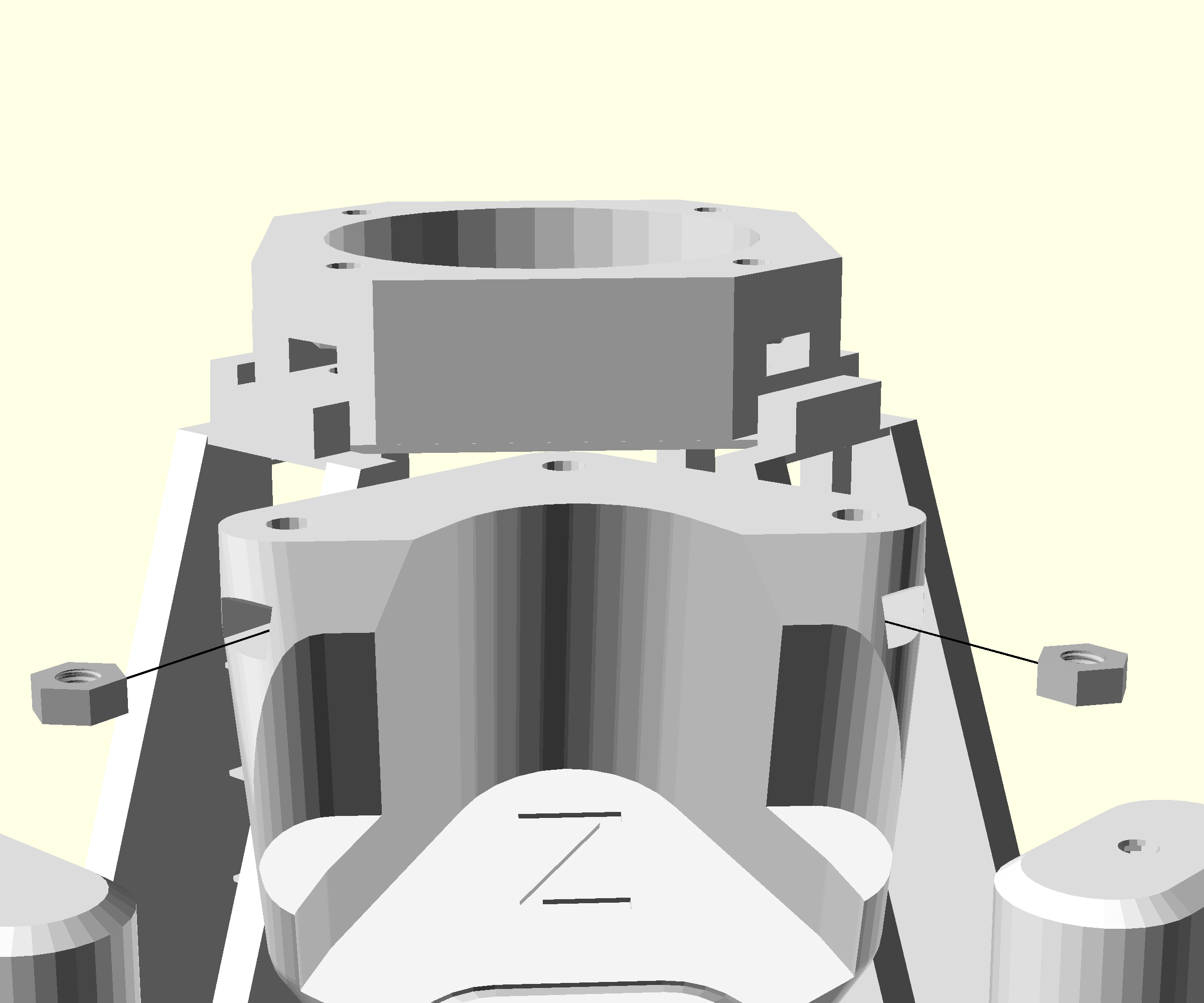 - Repeat the steps used above to add two M3 nuts into the platform above the z-axis. You do not need to insert a nut in the third hole on the illumination platform