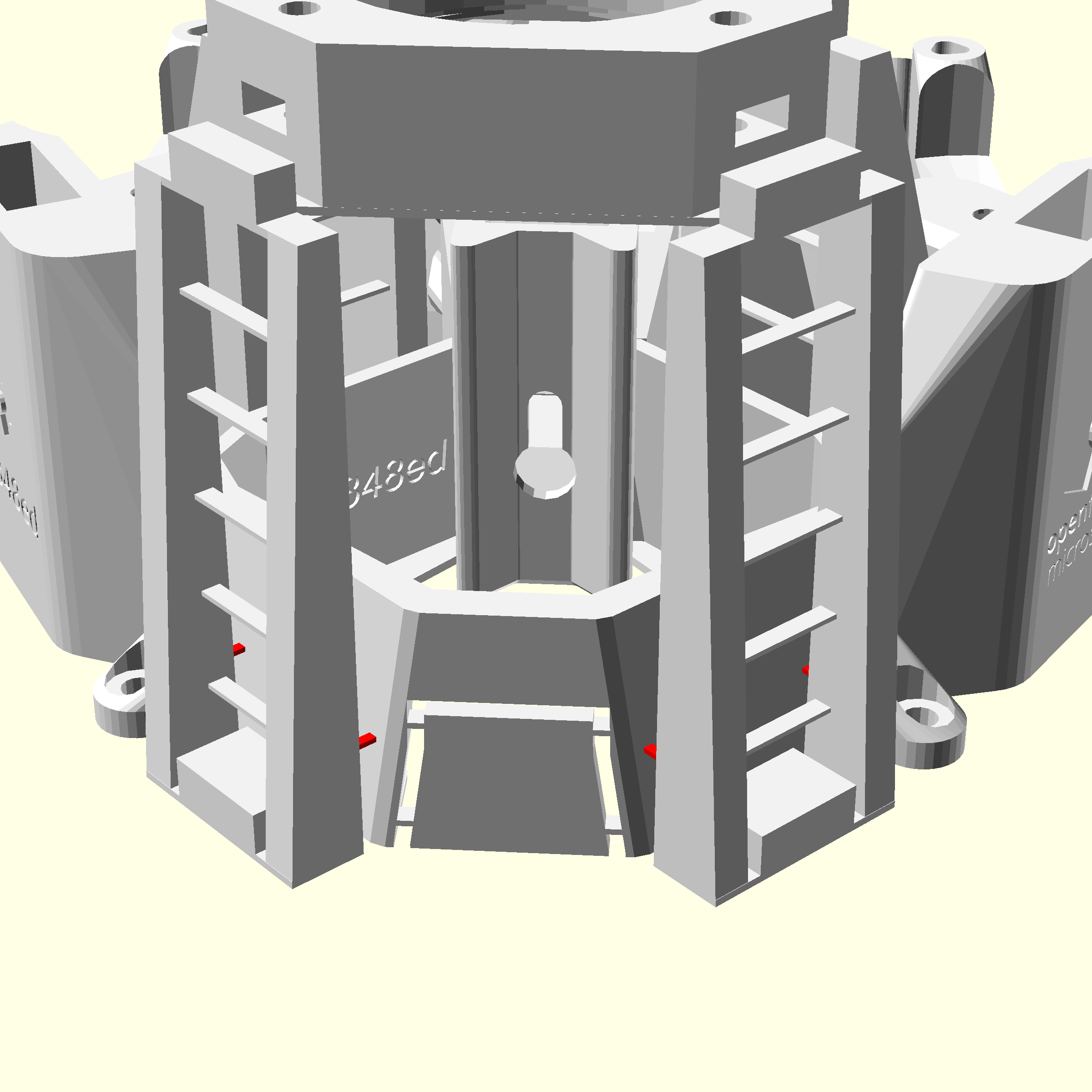 The main body has some custom supports and a custom brim to remove. These are highlighted in red in the following images.